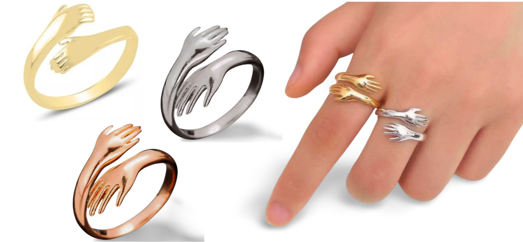 925 Sterling Silber Ring – Umarmende Hände – Umarmung Damenring
