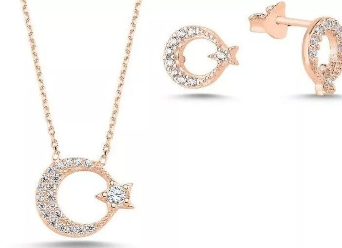 Ay Yildiz Damen Schmuckset 925 Silber Roségold | Halskette & Ohrstecker mit Zirkonia