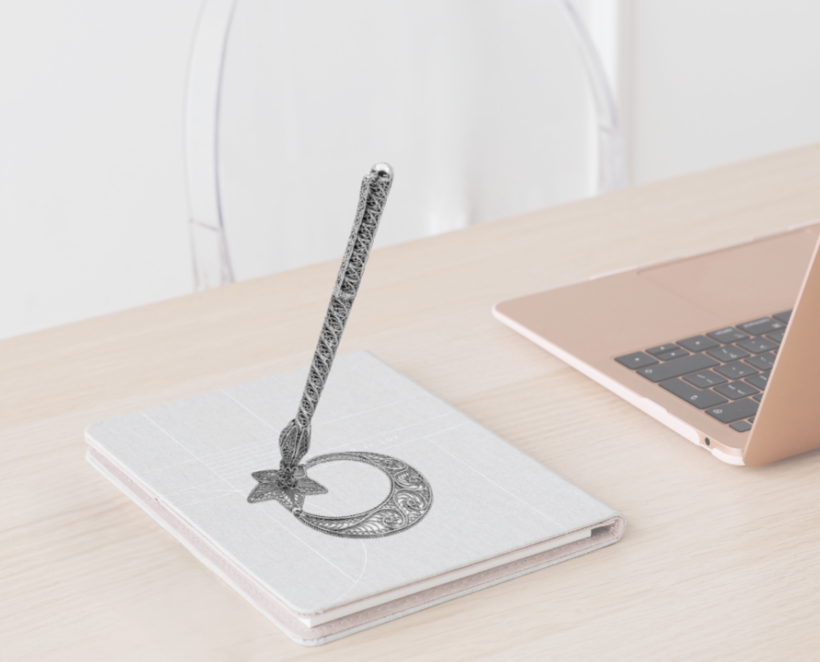 Ein exklusives Schreibgerät für Liebhaber hochwertiger Handwerkskunst und starker Symbole: Dieses edle Kugelschreiber-Set aus massivem 925er Sterling Silber besticht durch sein einzigartiges Ay-Yıldız-Design – inspiriert vom türkischen Halbmond und Stern.