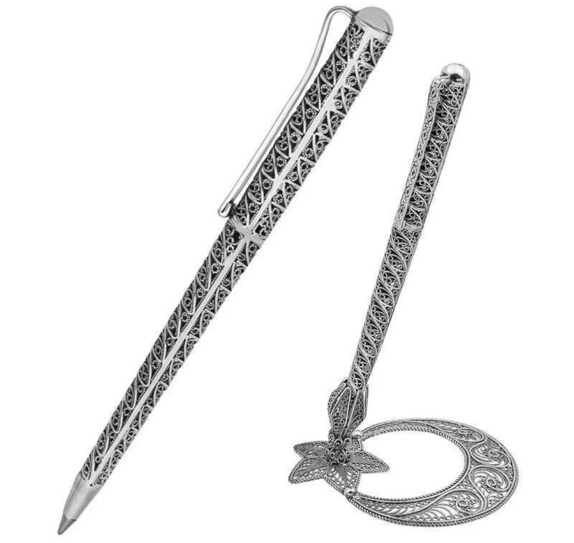 Ay Yıldız Kugelschreiber mit Halter – Massiv 925 Sterling Silber Schreibset Halbmond Stern Design