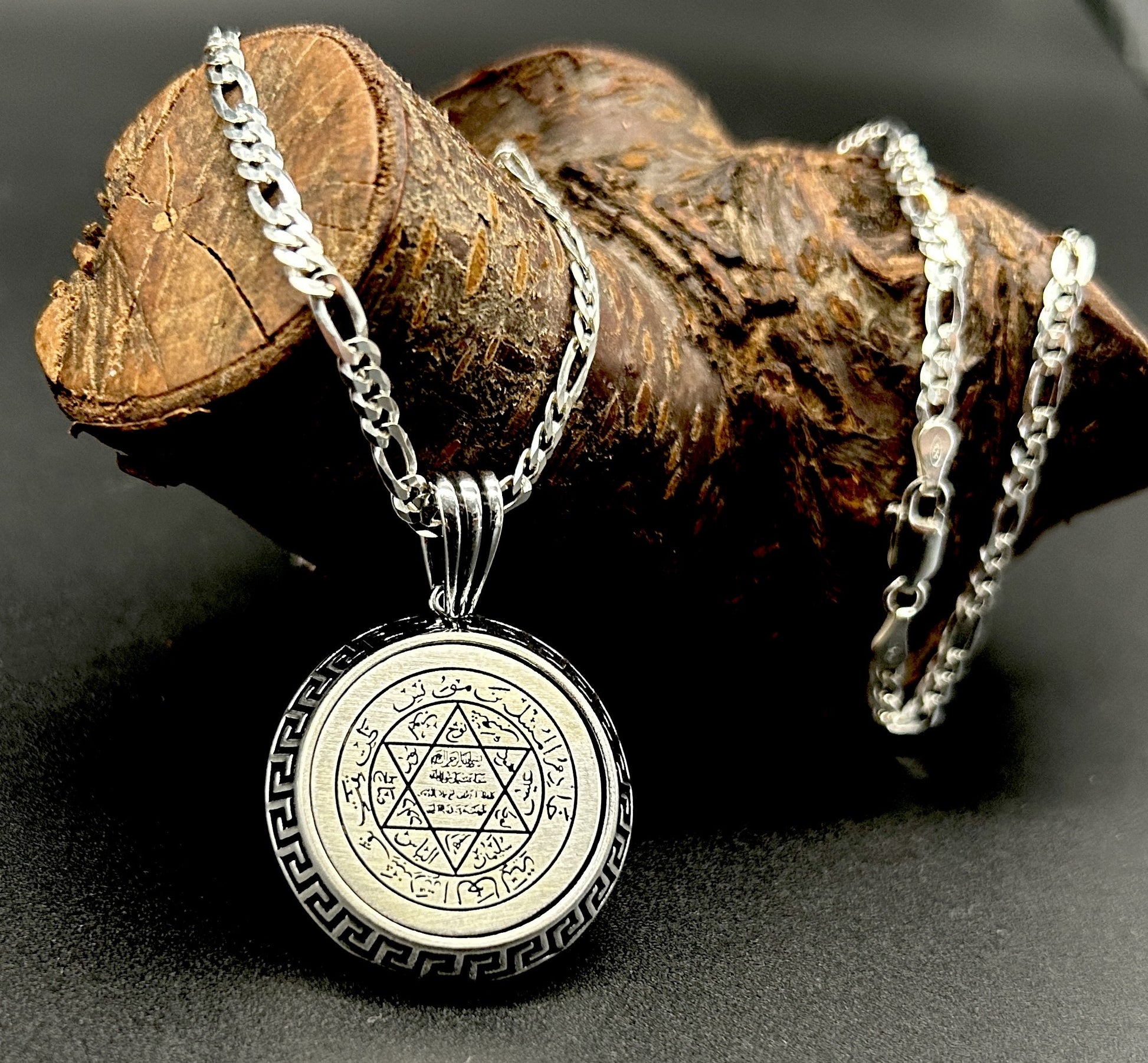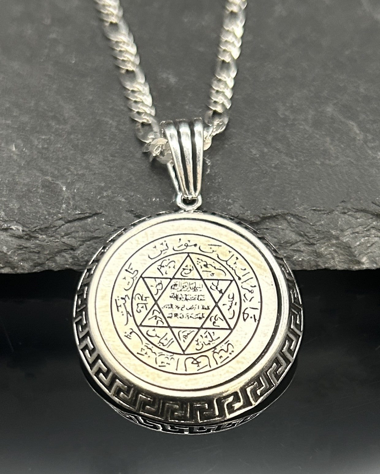 Hz.Süleyman Mührü Gümüs 3D Süleyman 925 Silber Siegel Salomons mit Figaro Kette