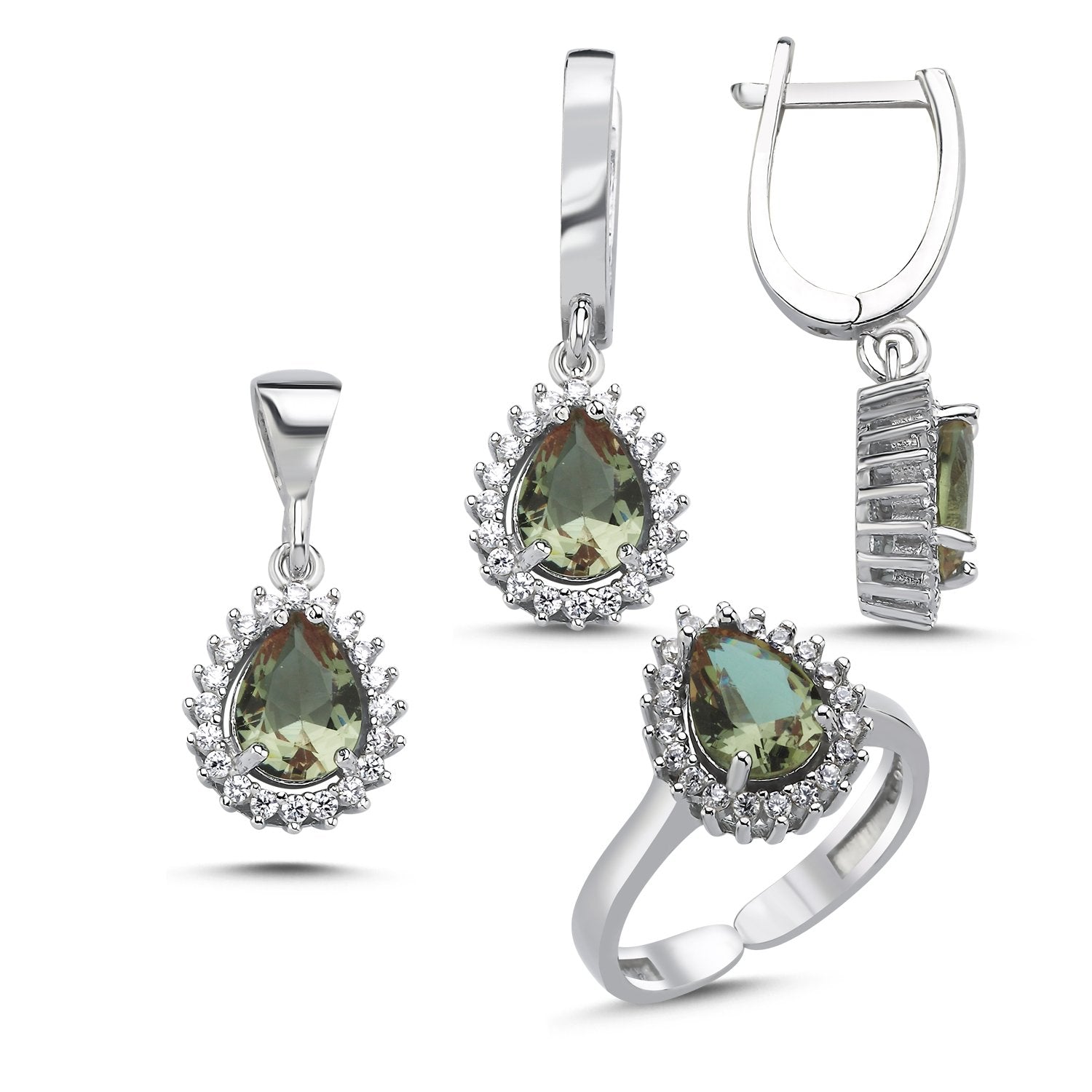 Damen Schmuckset Zultanit Tropfen Drop Cutting verstellbarer Halo Set & 925 Silber