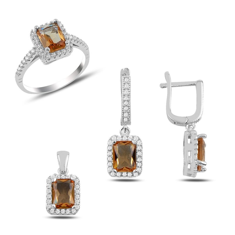 Damen Schmuckset Zultanit Baguette & CZ & 925 Silber – Halskette, Ahänger , Ohrringe & Ring