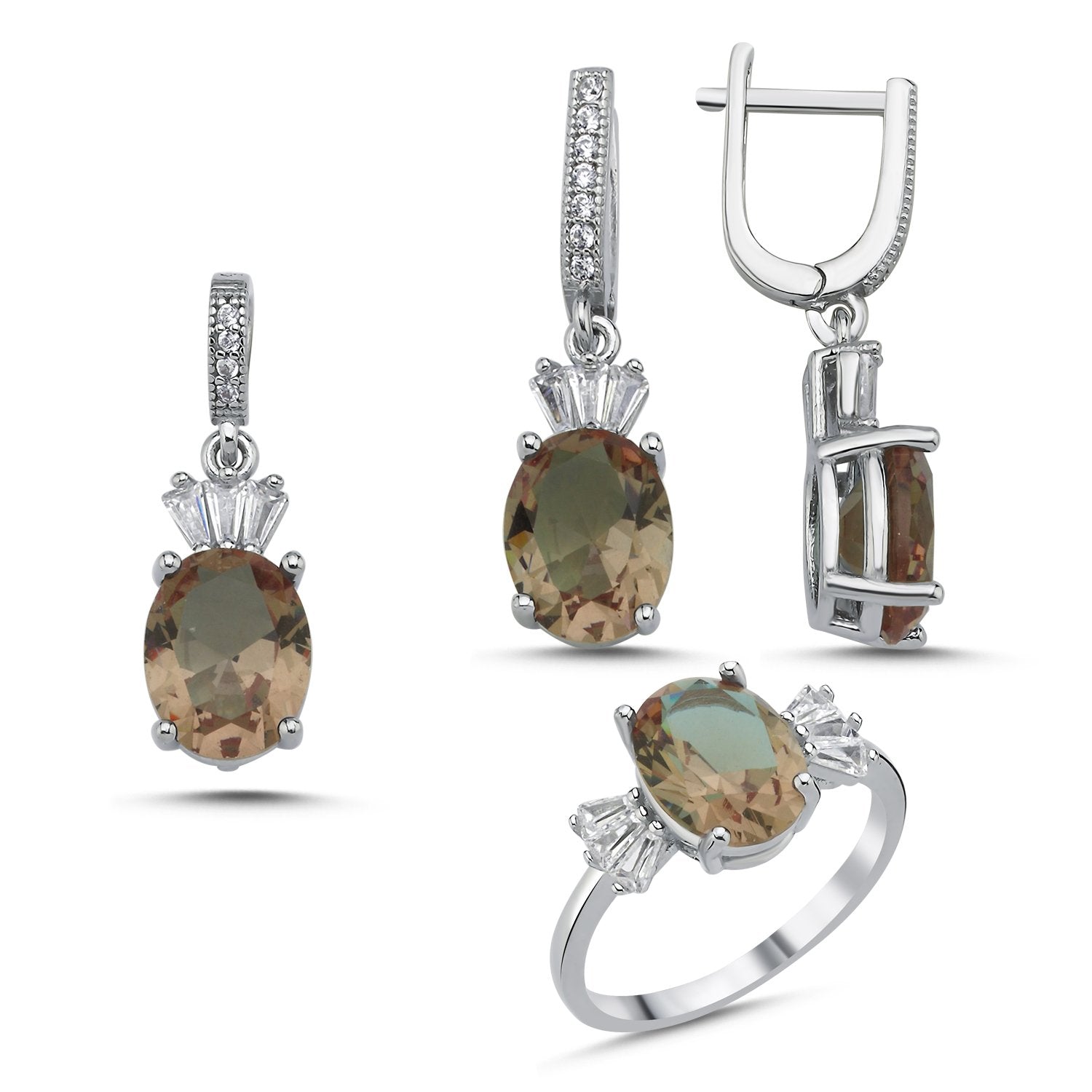 Damen Schmuckset Zultanit oval Baguette & 925 Silber – Halskette, Ahänger , Ohrringe & Ring
