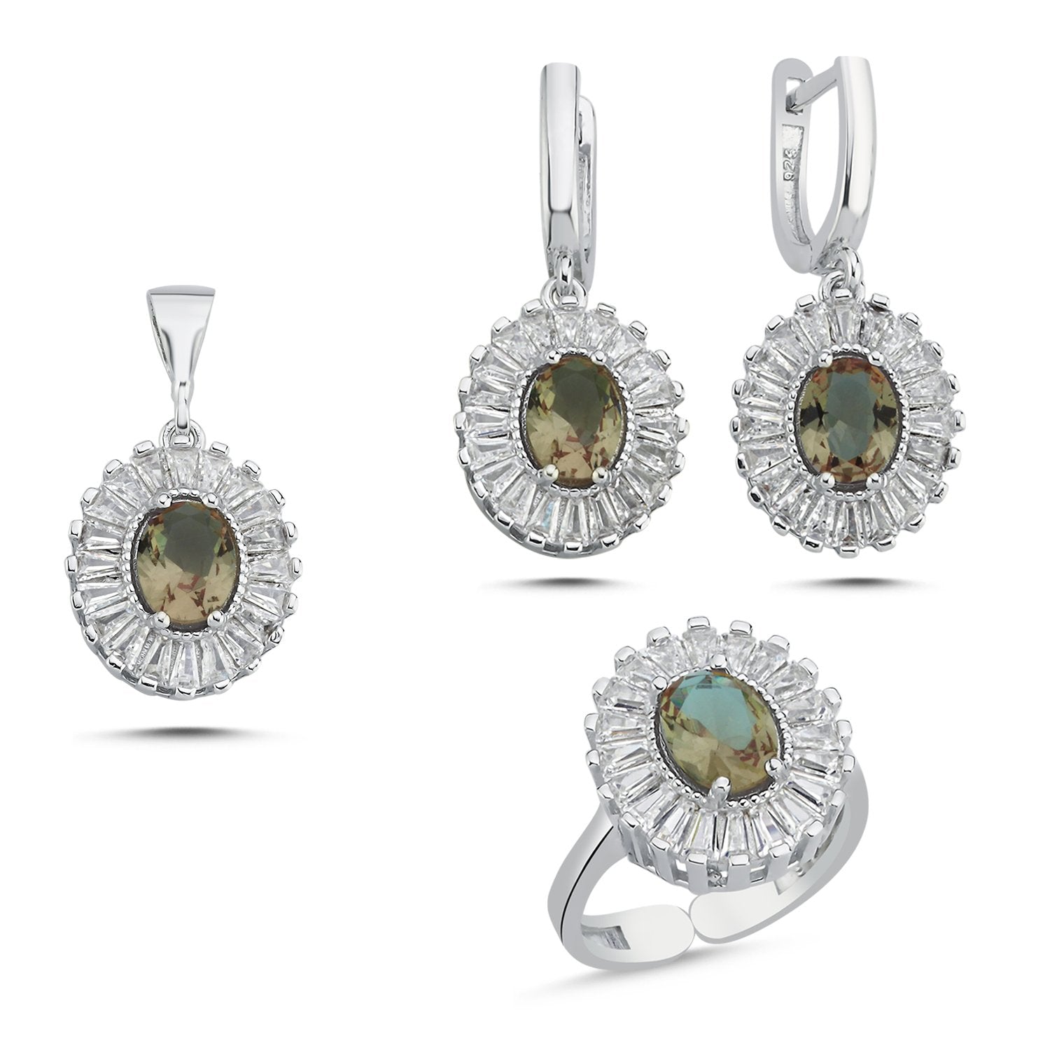 Damen Schmuckset Zultanit Oval Baguette CZ Einstellbar & 925 Silber – Halskette, Ahänger , Ohrringe & Ring