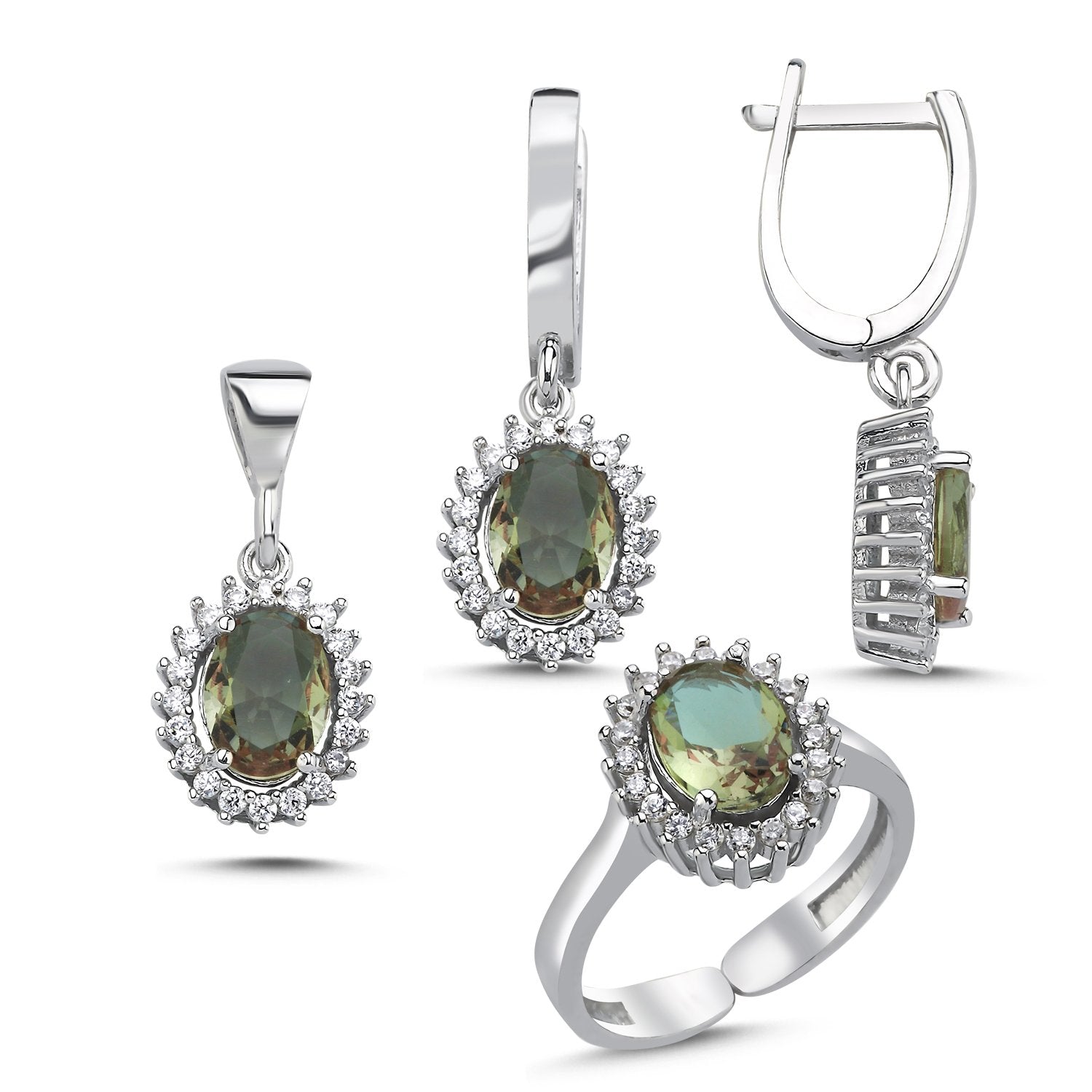 Damen Schmuckset Zultanit Zultanite Oval Cut CZ Adjustable Halo Set & 925 Silber
