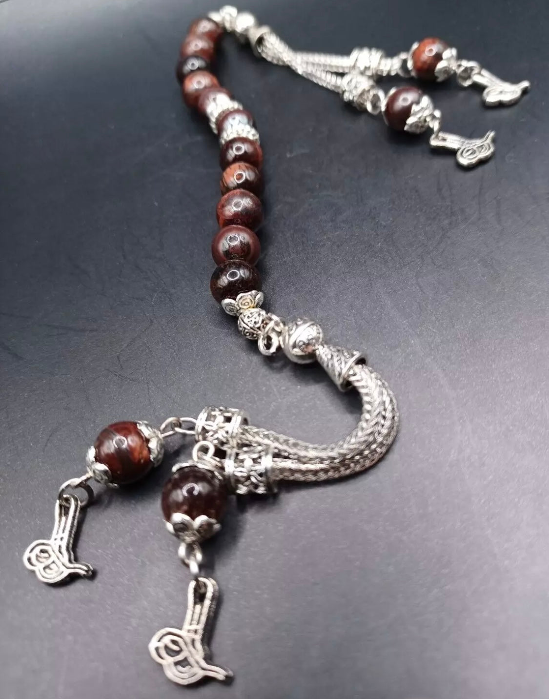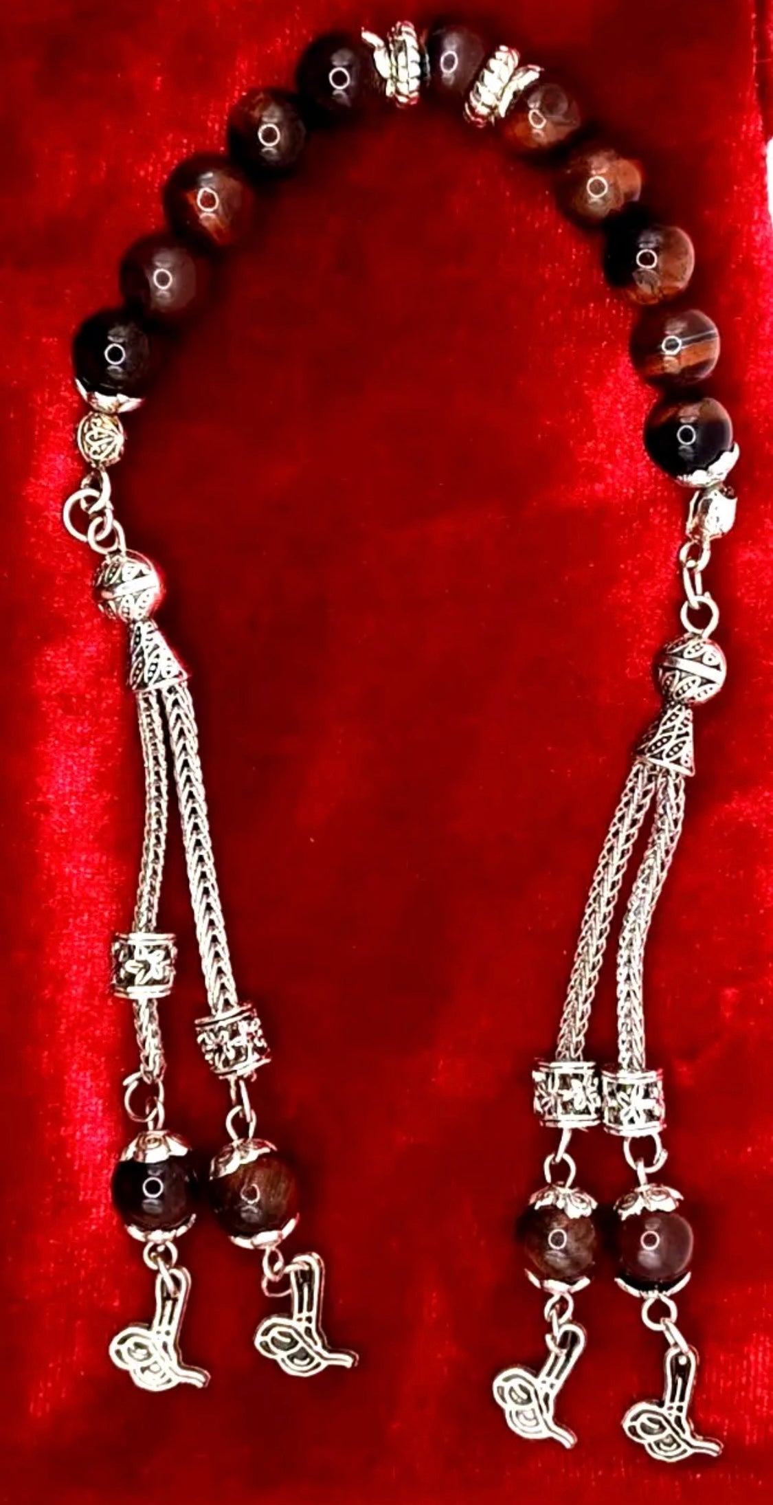 Zaza Gebetskette aus Tigerauge –mit Osmanische Siegel Tughra Quaste