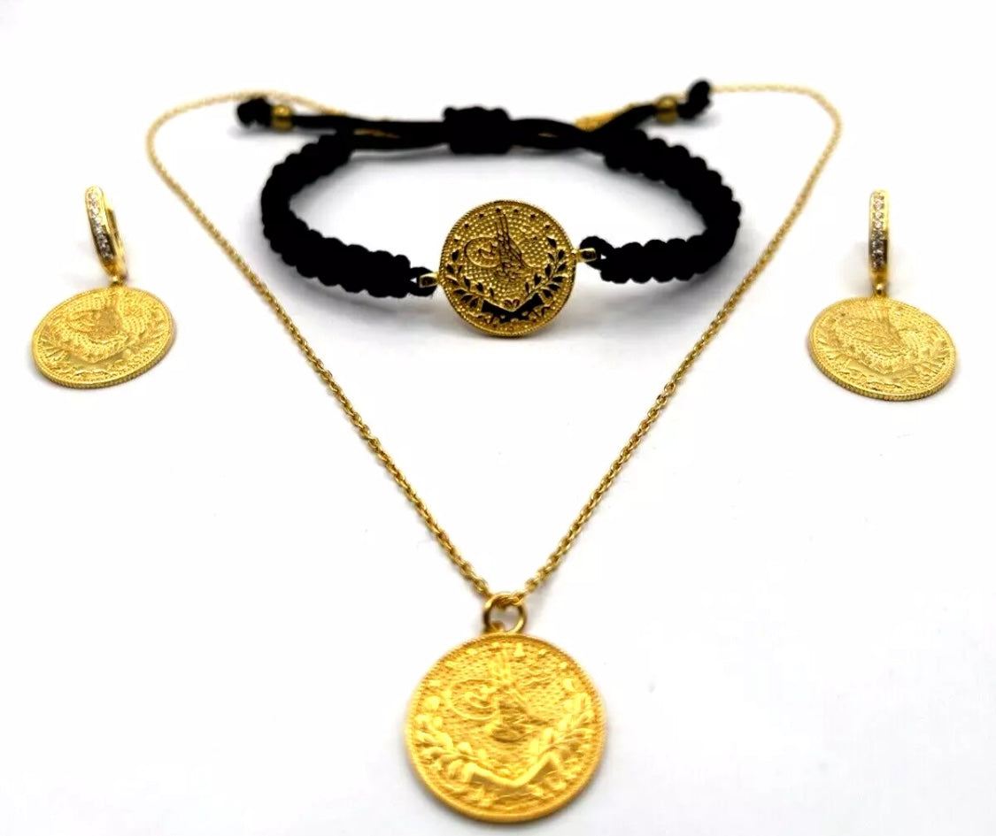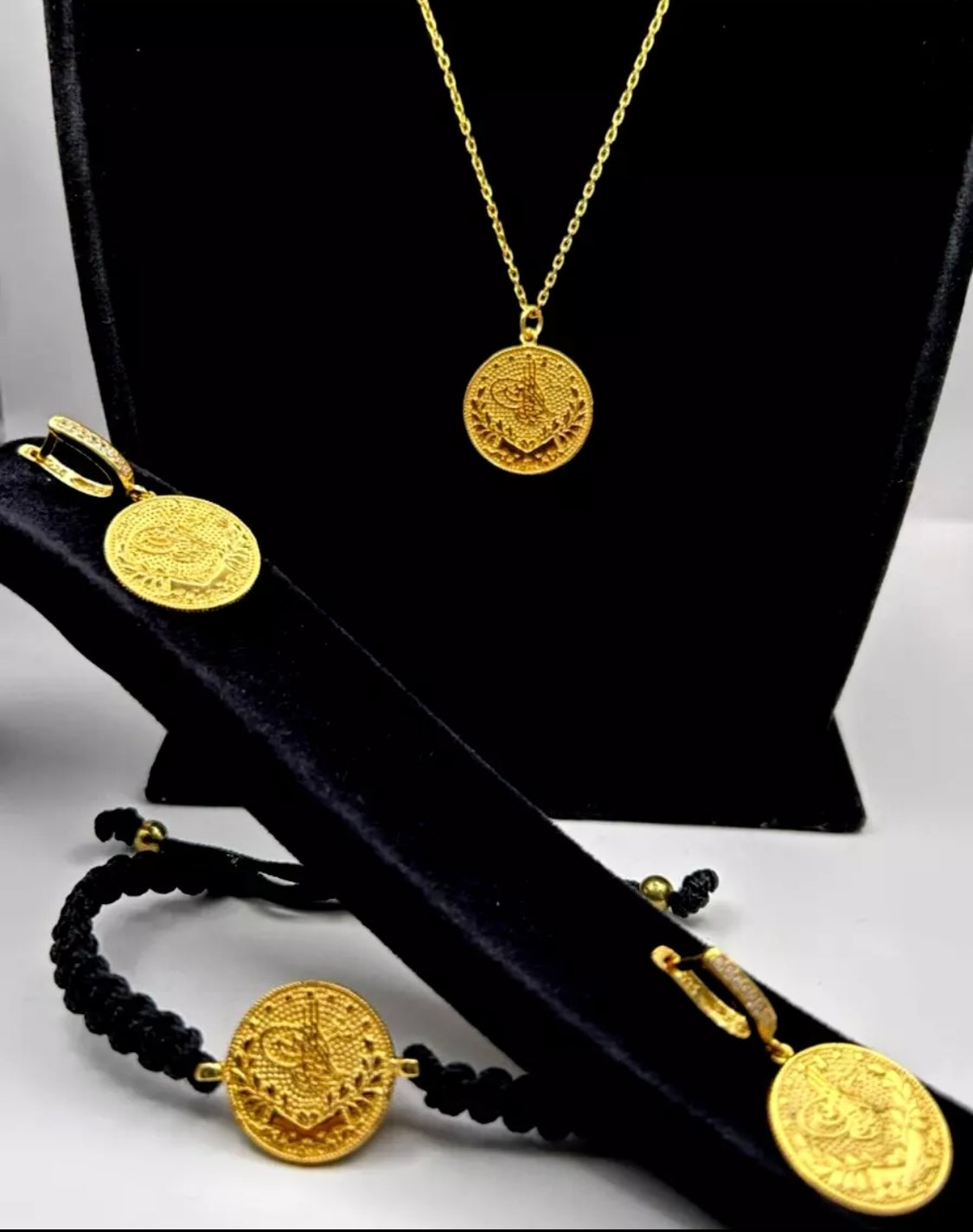 Osmanisches Tugra Schmuckset 925 Silber vergoldet | Halskette, Armband & Ohrringe