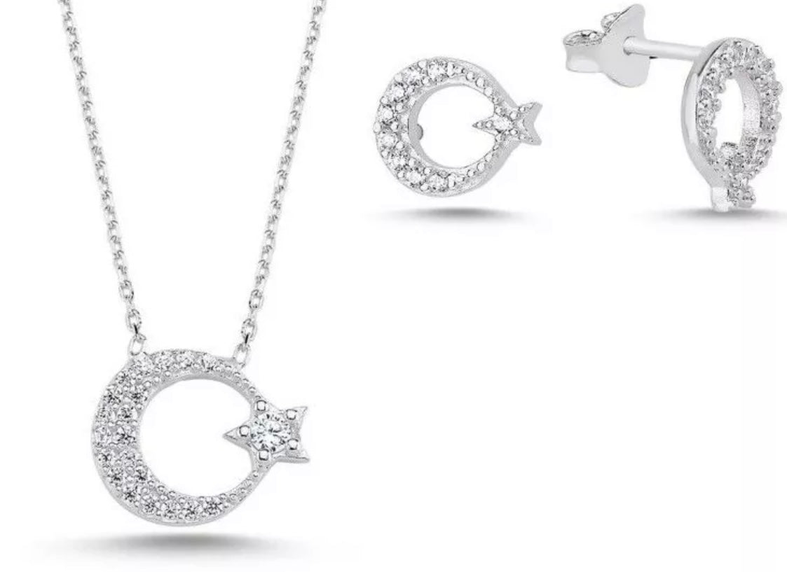 Ay Yildiz Damen Schmuckset 925 Silber | Halskette & Ohrstecker mit Zirkonia