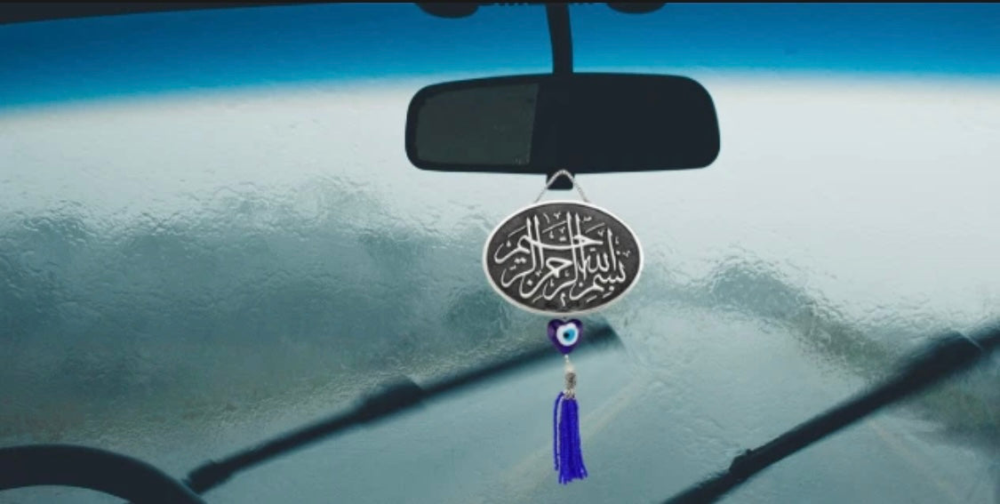 Bismillah Auto Innenspiegel Anhänger – Wanddeko aus 925er Silber | Besmele-i Şerif & Nazar