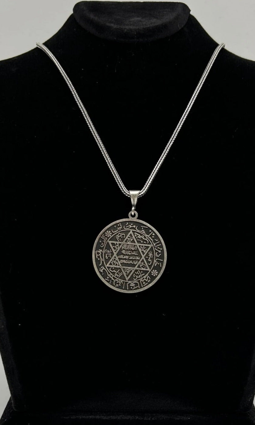 Der edle Süleyman Mührü (Siegel Salomons) ist weit mehr als ein Schmuckstück – er steht für Schutz, Mut und innere Stärke. Dieses exklusive Amulett wurde in Handarbeit aus massivem 925 Sterling Silber gefertigt und mit einer hochwertigen Zopfkette kombiniert.