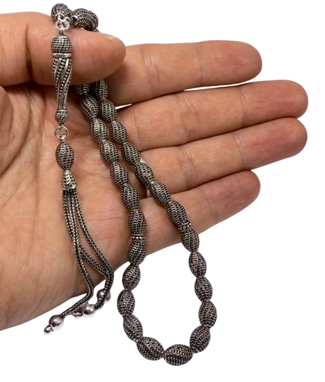Tesbih aus 925er Silber - Gebetskette Kapselform Fizyon Sterlingsilber
