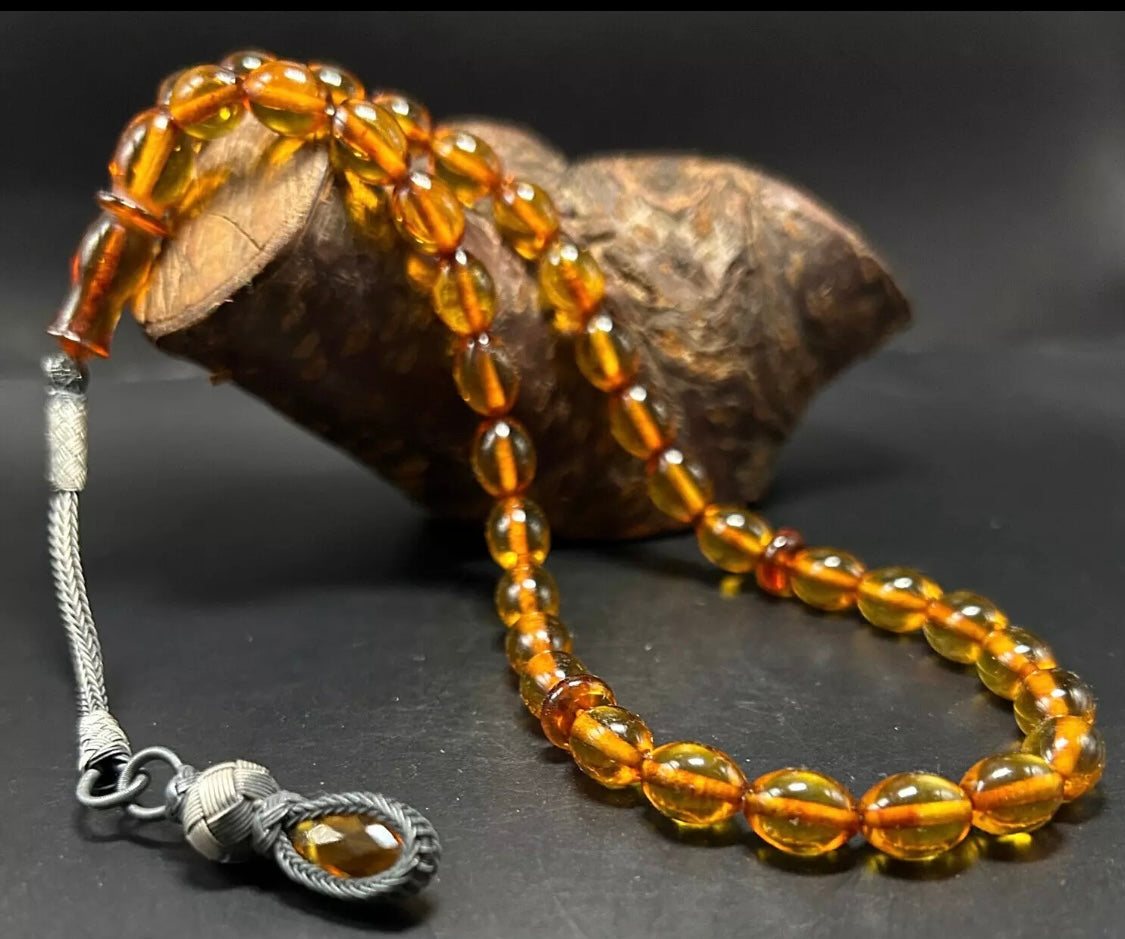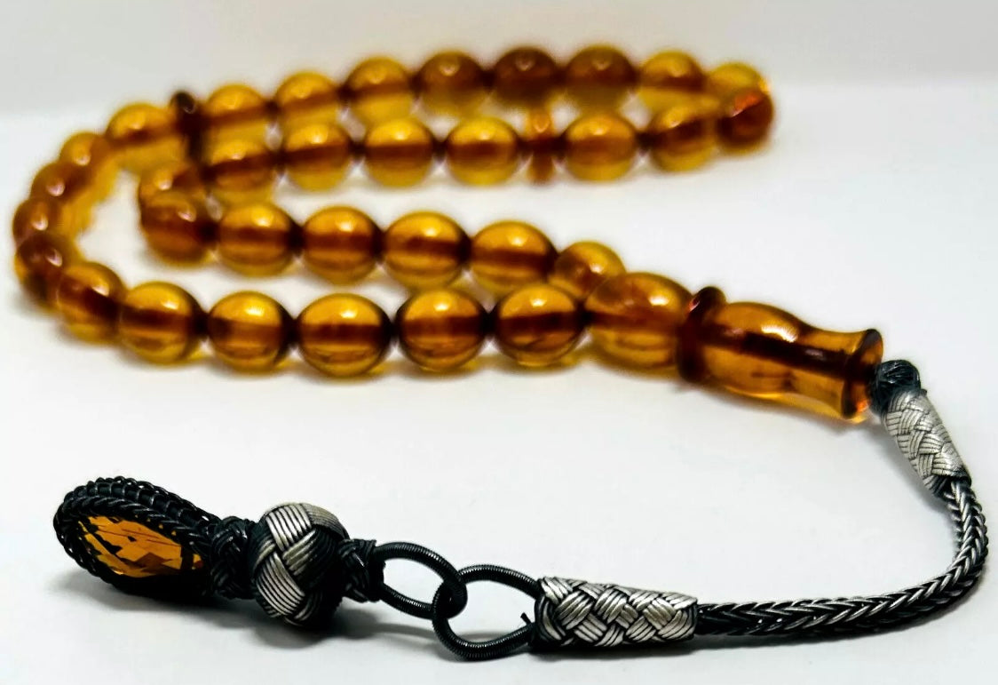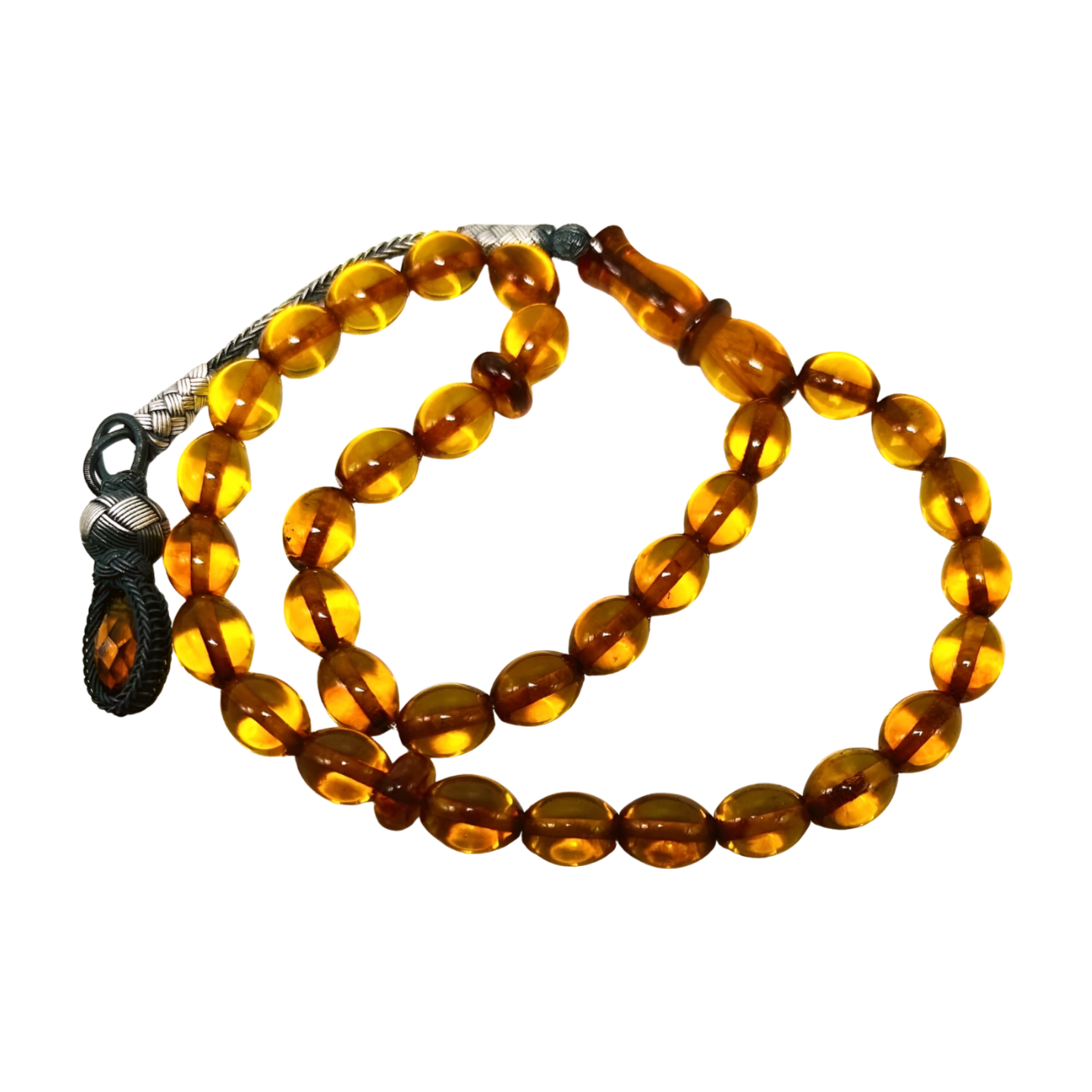 Die Tesbih überzeugt nicht nur durch ihren warmen Karamellton, sondern auch durch die exzellente Verarbeitung – ein echtes Schmuckstück für Kenner islamischer Kunst. Perfekt als stilvolles Geschenk oder wertvolle Ergänzung für deine persönliche Sammlung.