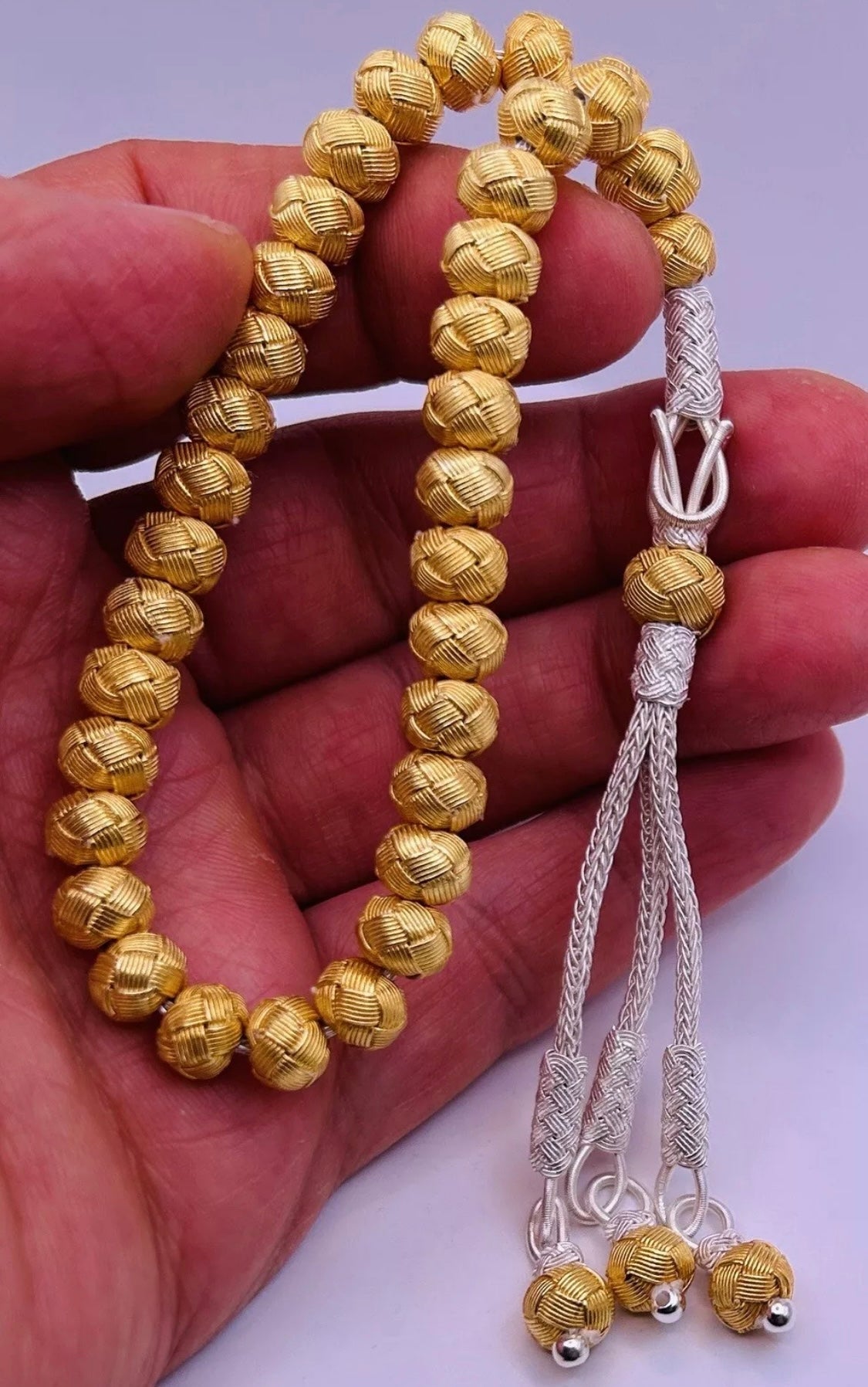 Trabzon Kazaz Tesbih - 1000er Silber - Handgeflochten Gebetskette vergoldet