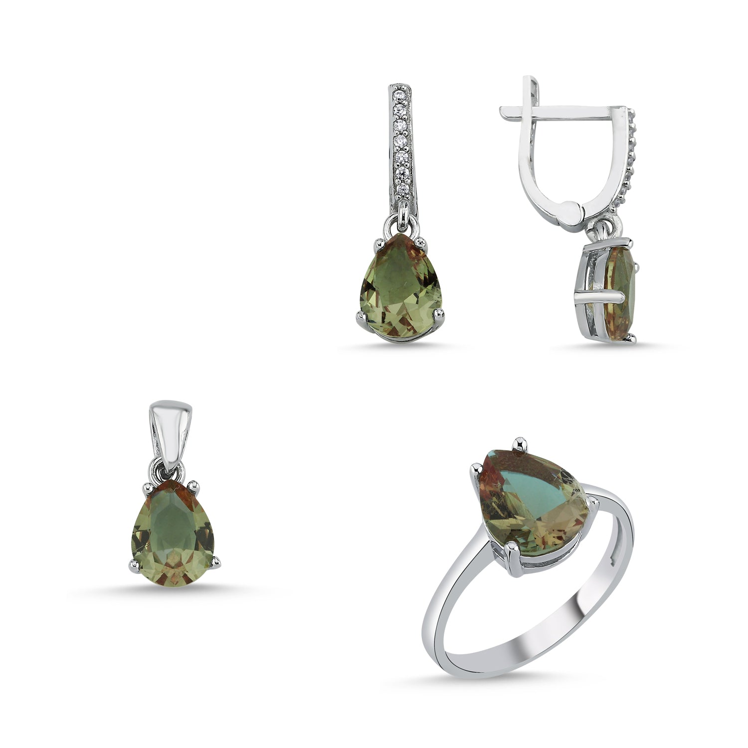 Zultanit Stein 925 Silber Schmuck Tropfen Sultanit Set Kette, Anhänger, Ohrringe, Ring