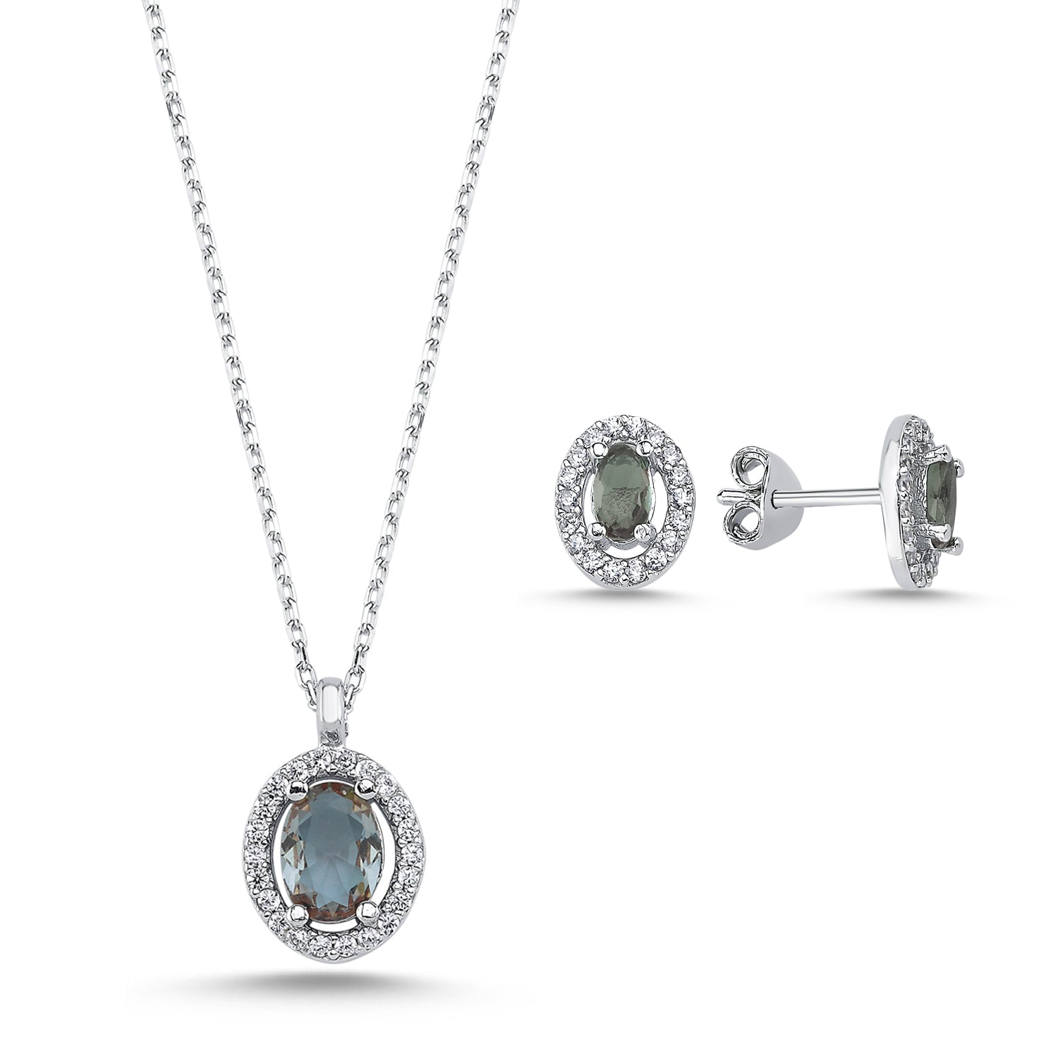 Zultanit Stein 925 Silber Schmuck Oval Sultanit Set Kette, Anhänger, Ohrringe