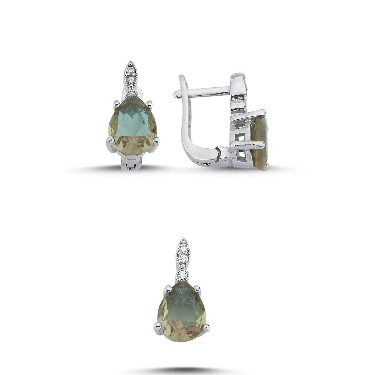 Es gibt einige Steine, die in der Natur ihre Farbe ändern. Einer davon ist Zultanitstein. In diesem Stein sind viele Farben zu sehen, insbesondere Grün, Braun und Rosa. Es passt seine Farbe an das Licht im Raum an. Es kann ein wunderschönes Regenbogenbild ausstrahlen. Man kann nicht sagen, dass der Zultanitstein aus sehr alten Zeiten stammt. Sie werden Freude daran haben, dieses Set zu verwenden, das Sie mit seinen funkelnden Steinen an Sterne erinnert, die Sie im Alltag und zu besonderen Anlässen auswählen können. Auf Sie wartet das mit Zultanitstein besetzte Silber, das alle Damen anspricht, die einen stilvollen Look haben möchten und nie aus der Mode kommen.