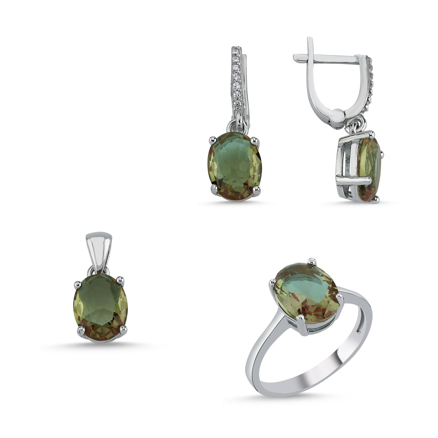 Zultanit Stein 925 Silber Schmuck Oval Sultanit Set Kette, Anhänger, Ohrringe, Ring